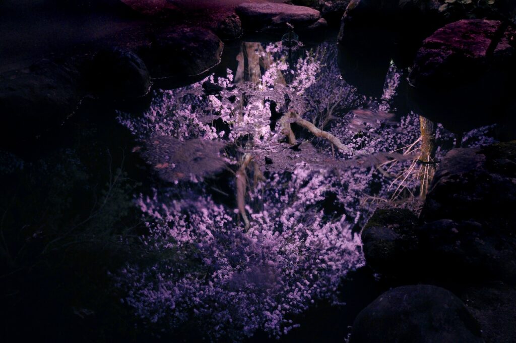 水面に映る幻想的な「深淵(しんえん)の桜」